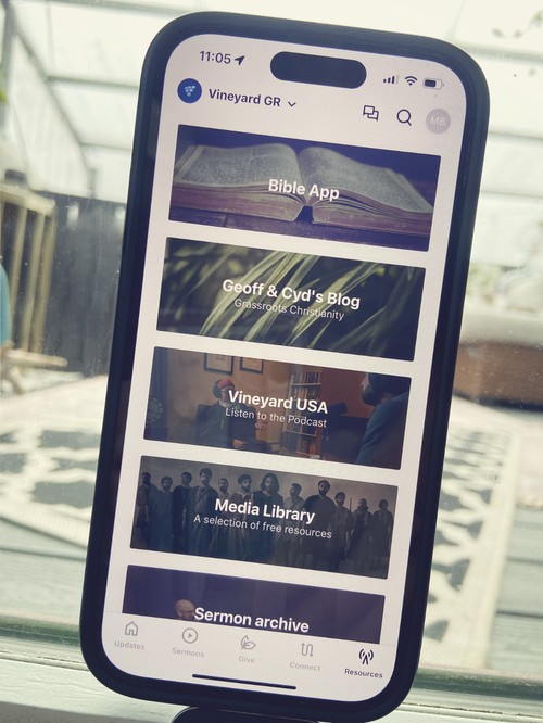 Download it in the Apple or Android app store by searching for Vineyard Grand Rapids.